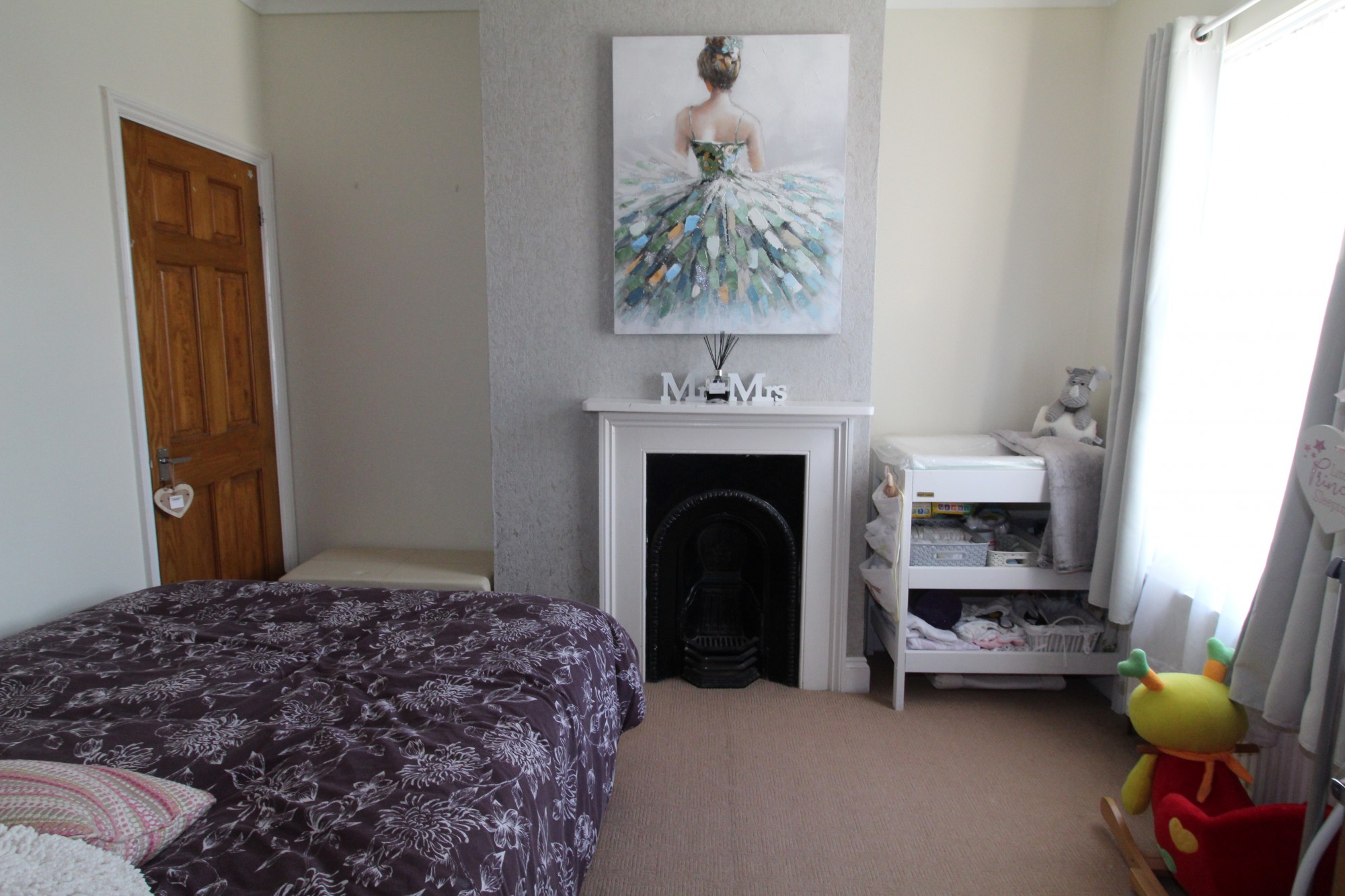 Bedroom Two 10’11 x 9’11 (3.23m x 3.01m) Double glazed window to rear, carpet as laid, storage cupboard, feature fire place, radiator